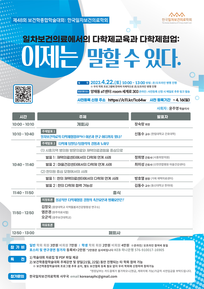 | [한국일차보건의료학회] 2023년 춘계학술대회 등록안내 |