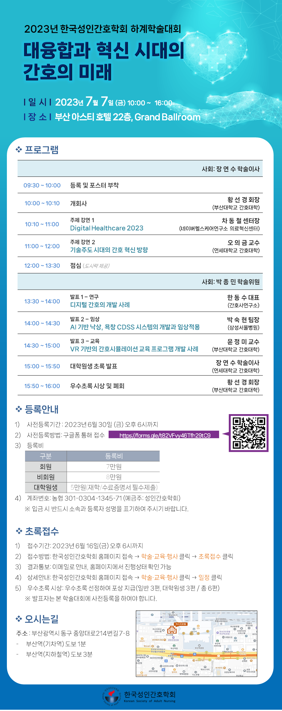 | [한국성인간호학회] 2023년 하계학술대회 개최 안내 |