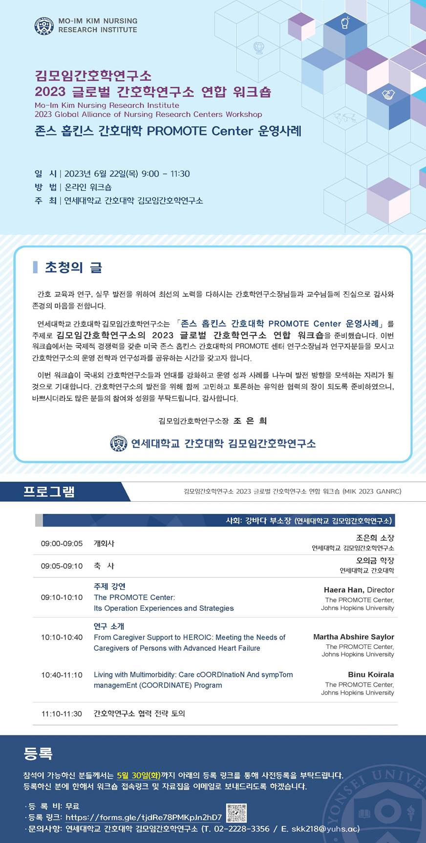 | [김모임 간호학연구소] 2023 글로벌 간호학연구소 연합 워크숍 개최 안내(6.22(목) 09:00~11:30) |