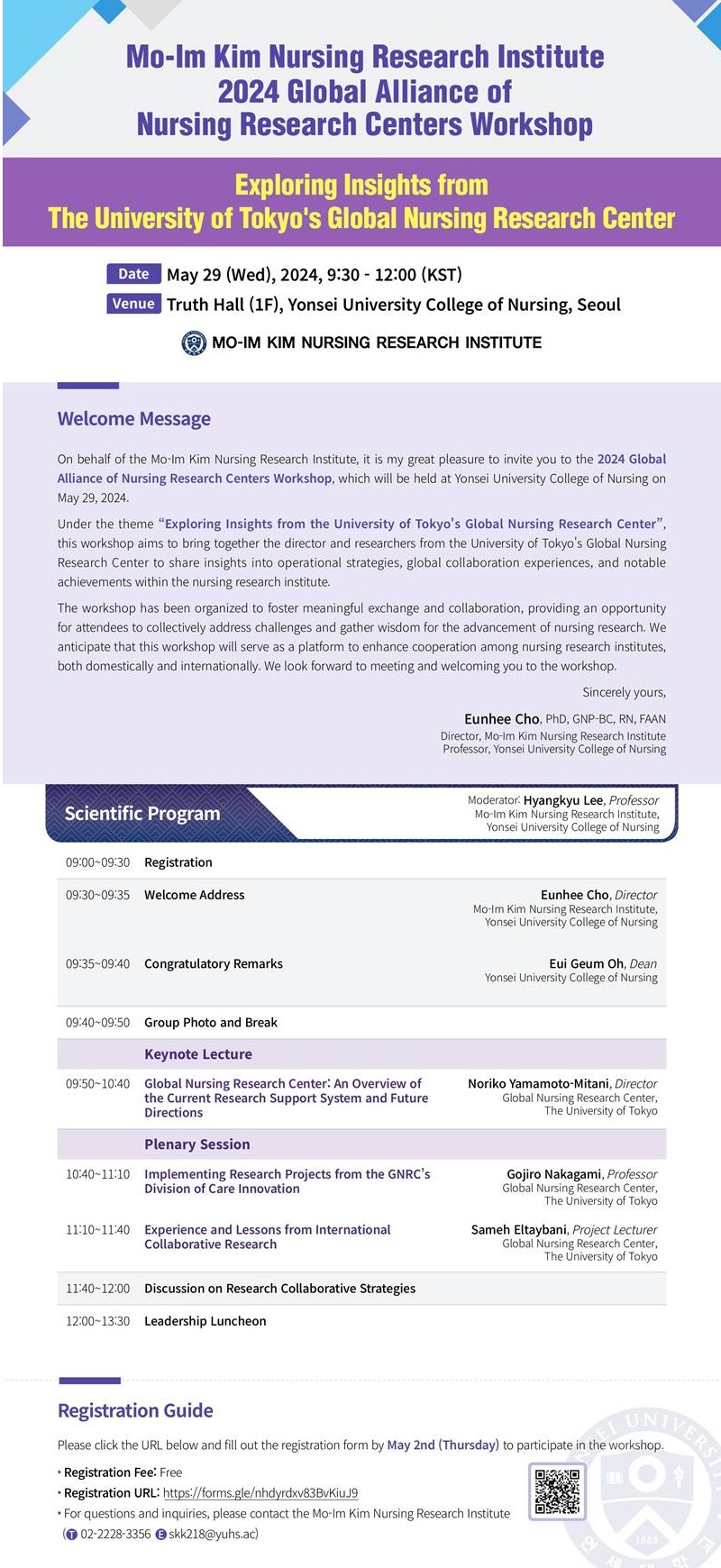 | [김모임간호학연구소] 2024 글로벌 간호학연구소 연합 워크숍 개최 안내(5.29(수) 09:30~12:00) |