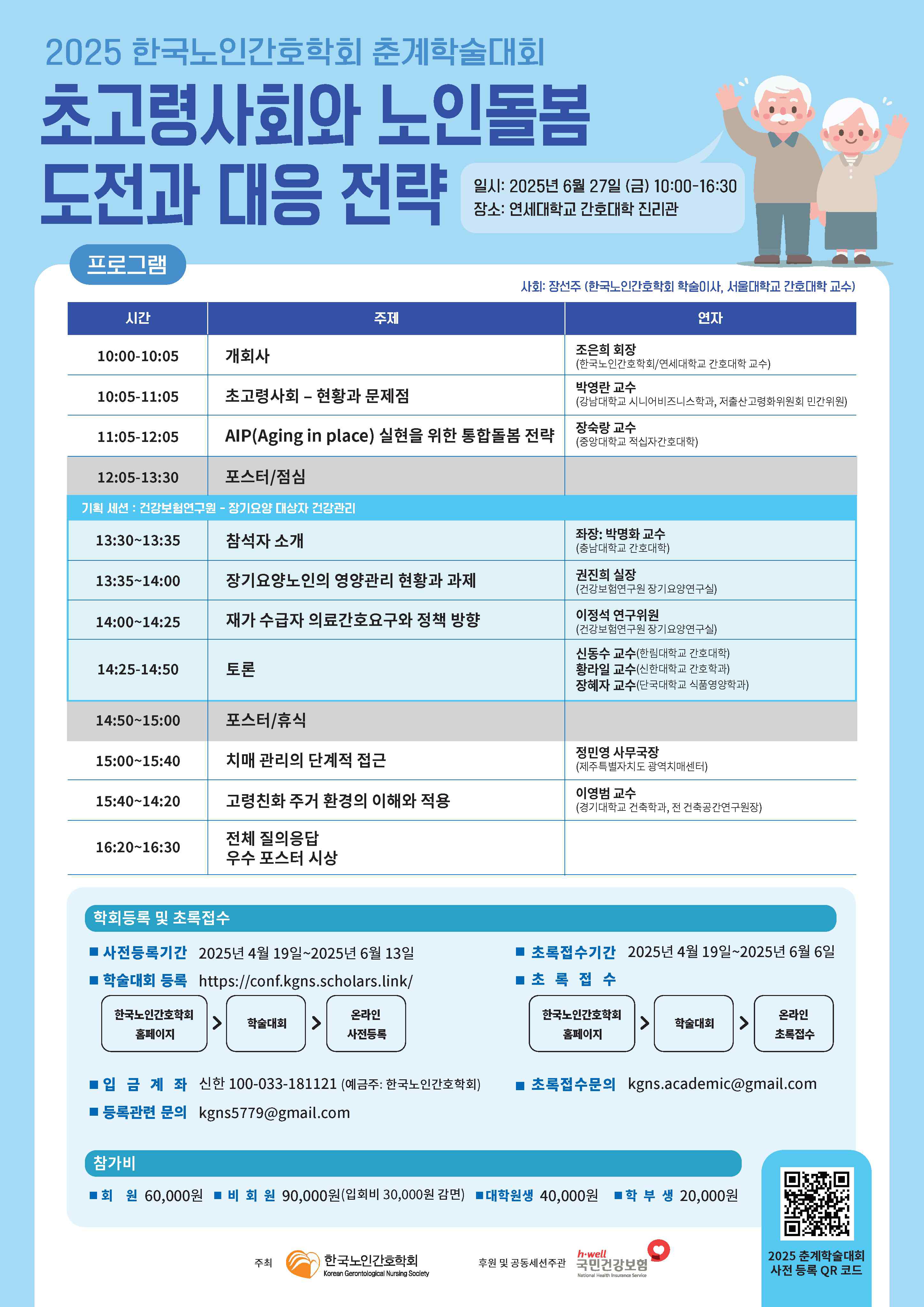 | [한국노인간호학회] 2025년도 춘계학술대회 개최 - 2025.6.27.(금), 연세대학교 간호대학 진리관 |