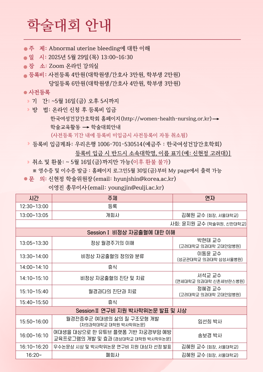 | 2025년 한국여성건강간호학회 제63회 춘계학술대회(5/29 목) |