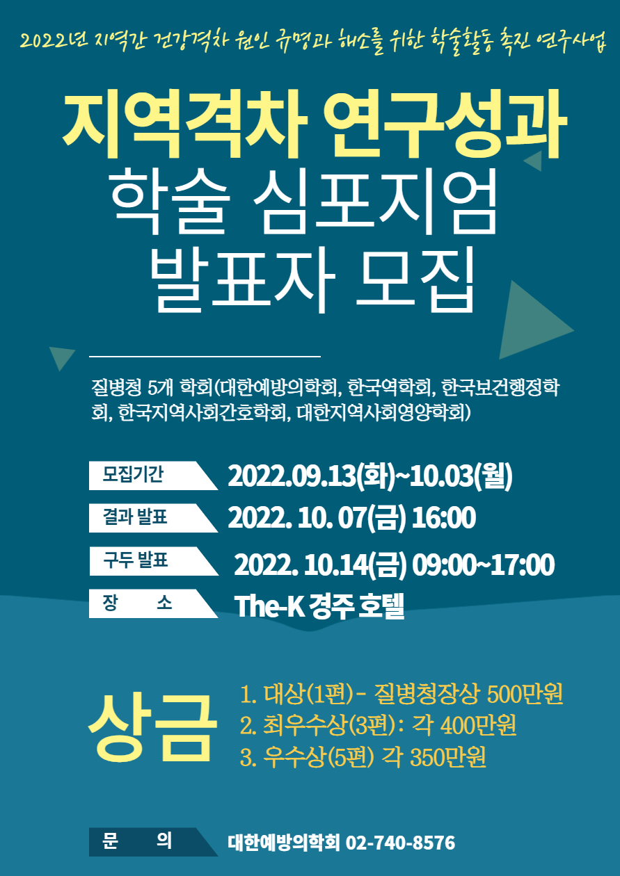 2022년 질병관리청 학술활동 촉진 연구사업 지역격차 연구성과 학술 심포지엄 발표자 모집