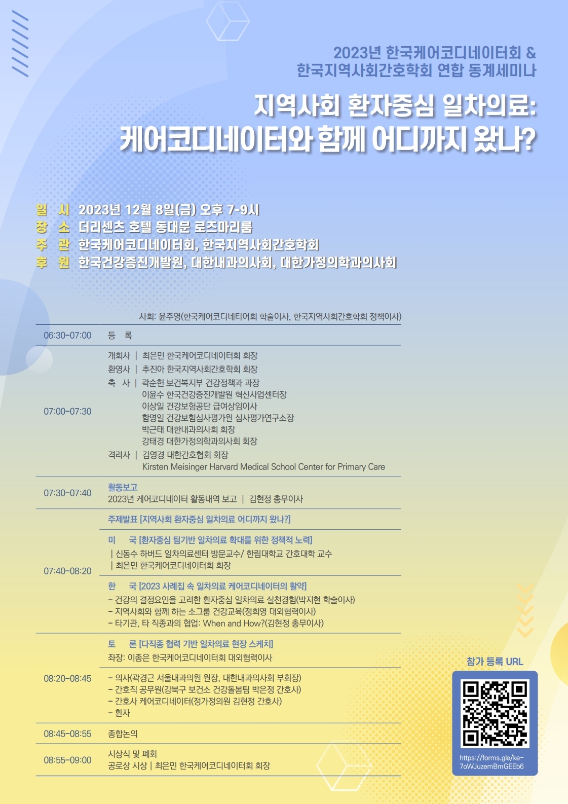 | 2023년 한국케어코디네이터회&한국지역사회간호학회 연합 동계세미나 안내 |