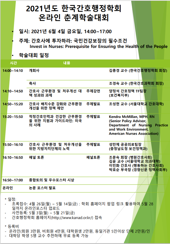 2021년도 한국간호행정학회 온라인 춘계학술대회 개최 안내