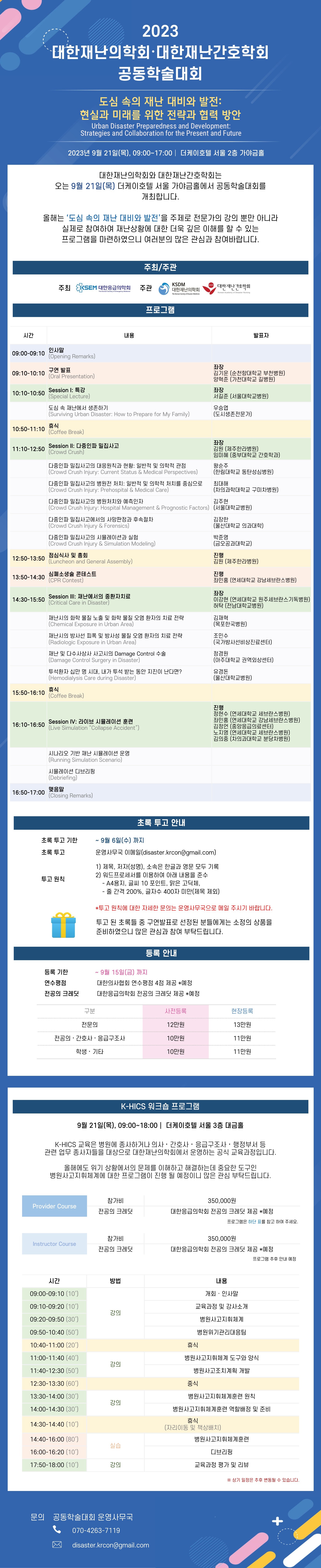 | [대한재난의학회·대한재난간호학회] 2023년 공동학술대회 등록안내 |