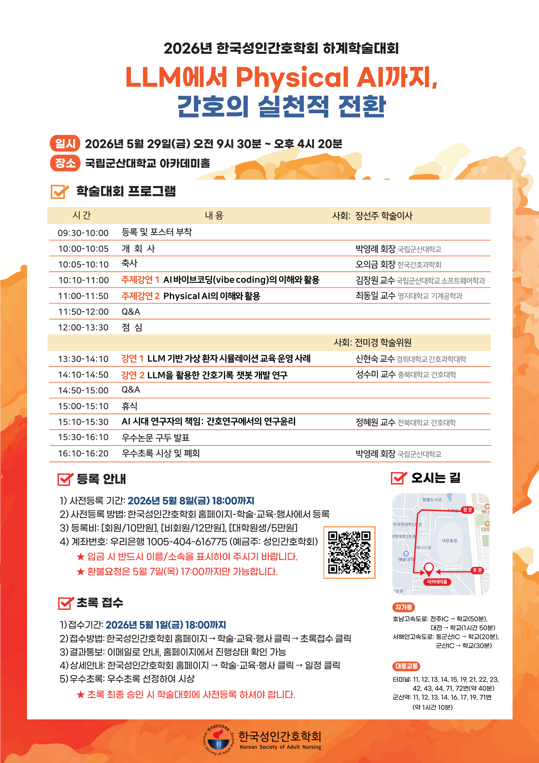 | [한국성인간호학회] 2026년 하계학술대회 -26.05.29(금), 국립군산대학교 아카데미홀 |